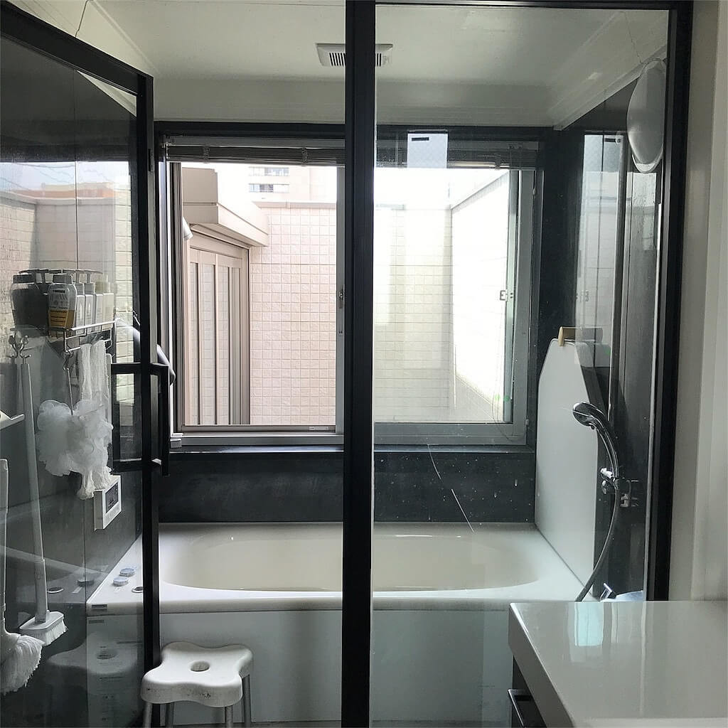 買った勢いで翌日朝にバスルームを掃除しました。無印の商品札もとらずに掃除!隅々まで掃除!