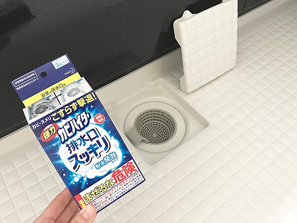 こちらの【カビハイター 排水口スッキリ】なら手を汚さずに簡単にお掃除出来ちゃいます。