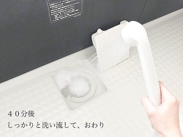 排水口の周りに粉をかけて、その上から水をかけると泡~泡~してくるので30分以上放置するだけ。 ※放置しすぎ注意
