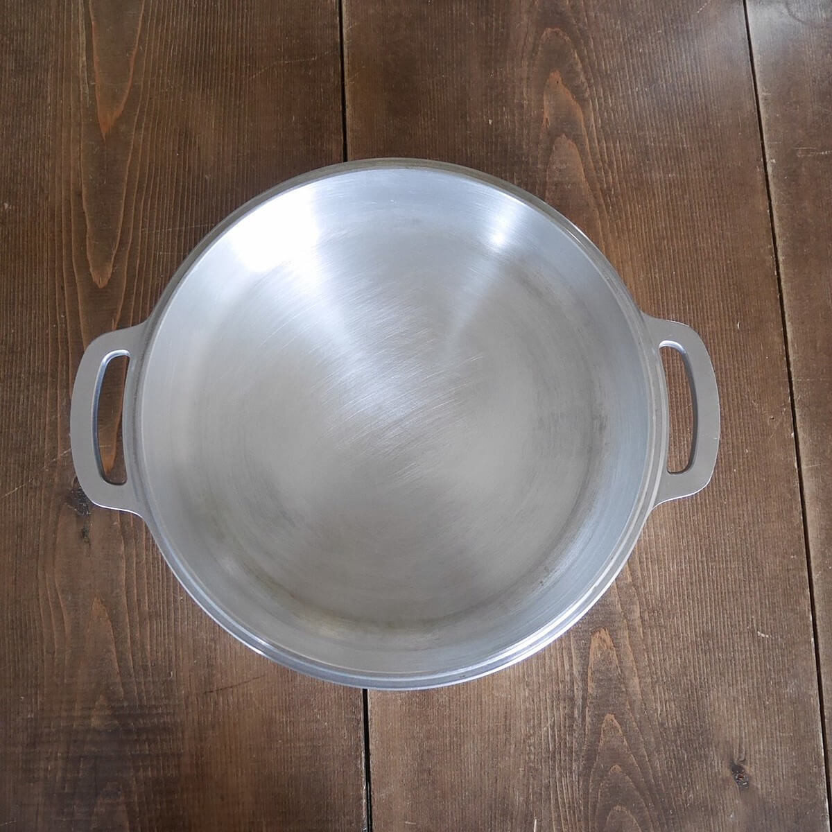 本体も、アルミ鍋には性質上どうしても付いてしまう黒ずみも落ちて、ワントーン明るくピカピカになりました。