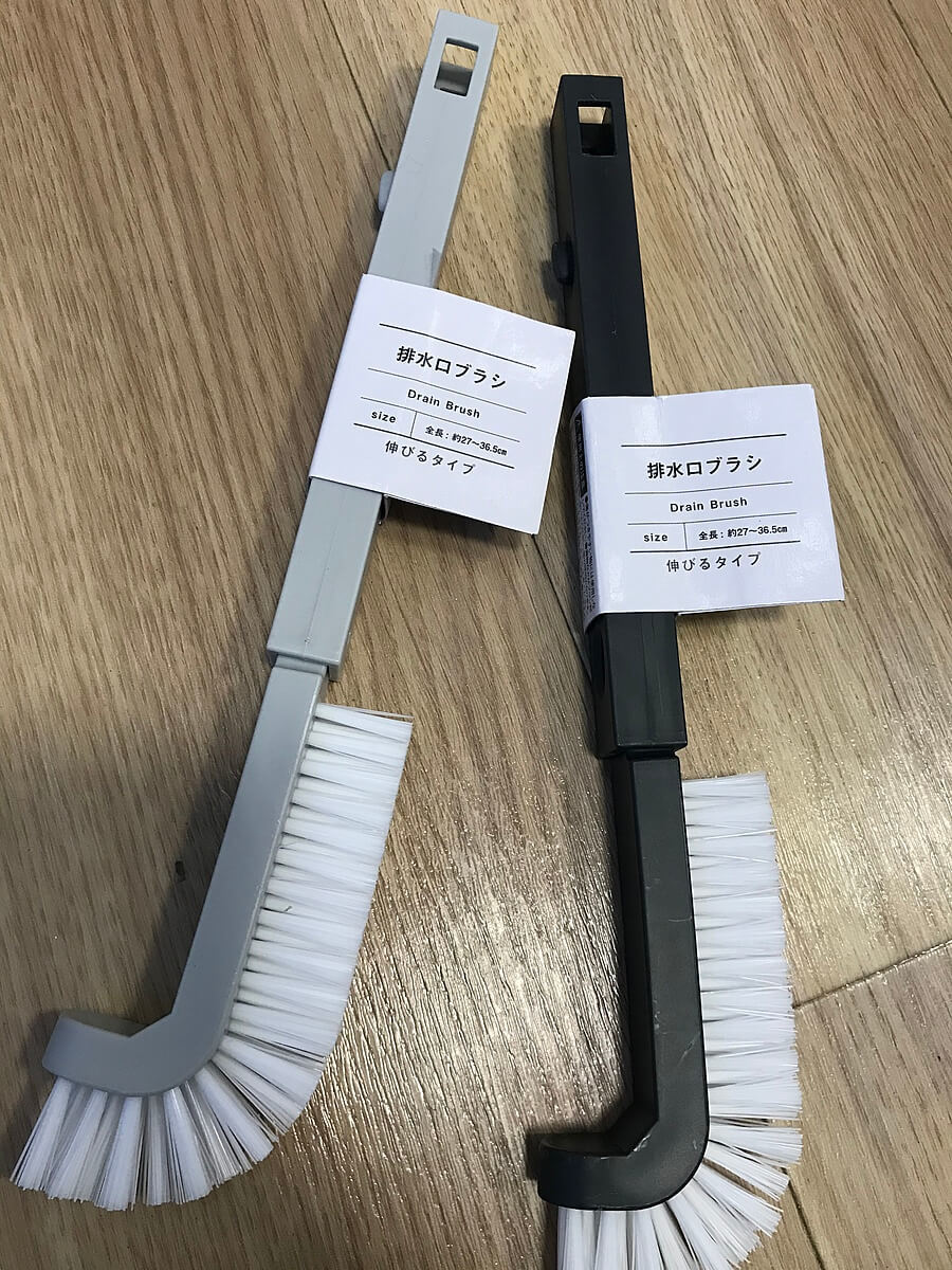 こちらはセリアで購入した、モノトーンでオシャレな排水口ブラシです。 こちらは今回ブラックとグレーの2本買い!