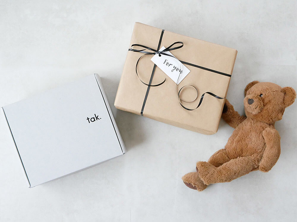 お祝いの気持ちを込めたtak.のギフトボックスなら、開けたときにきっと笑顔に……。