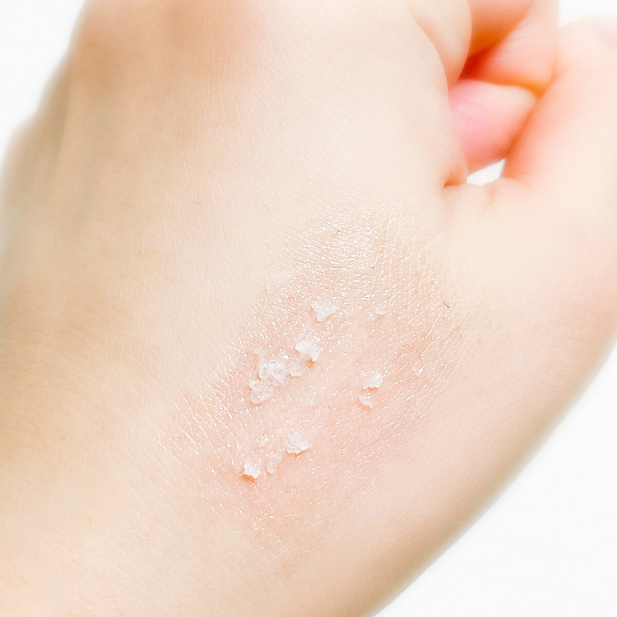 ということで今回はスパチュラで先端を切り、スクラブ部分を手に乗せてみました。