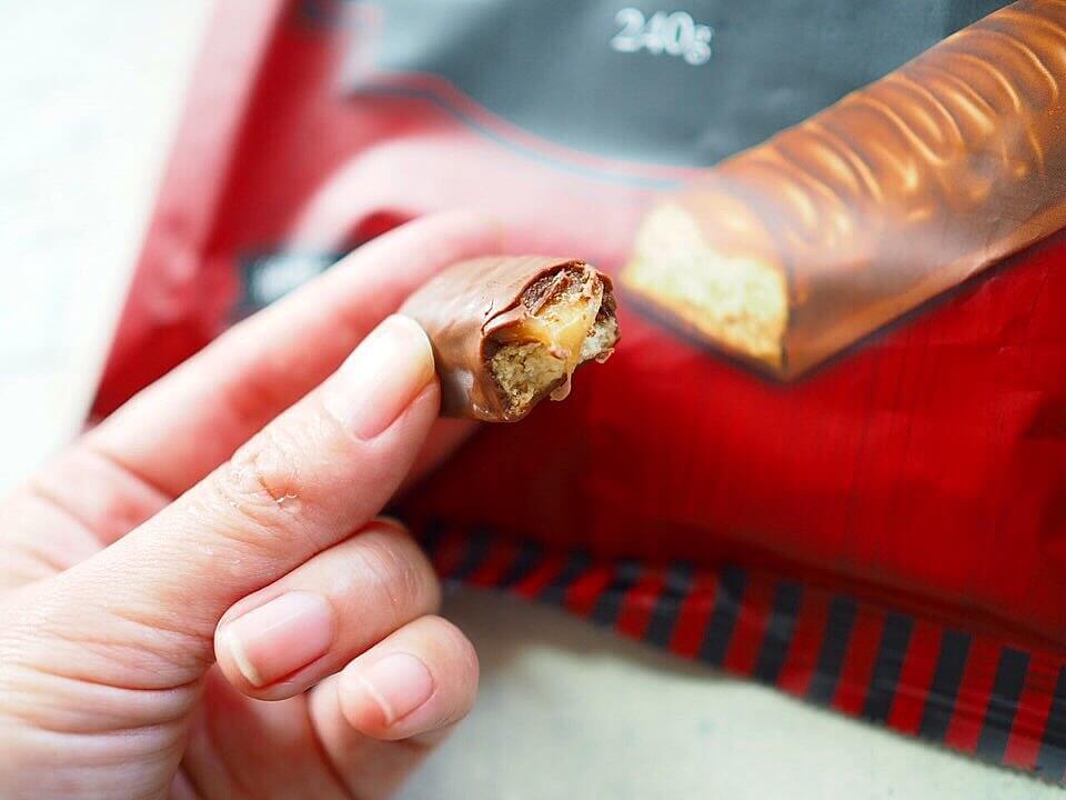 1本あたり約20円なのに、チョコとビスケットと生キャラメルのようなリッチテイストが味わえるなんて嬉しい!