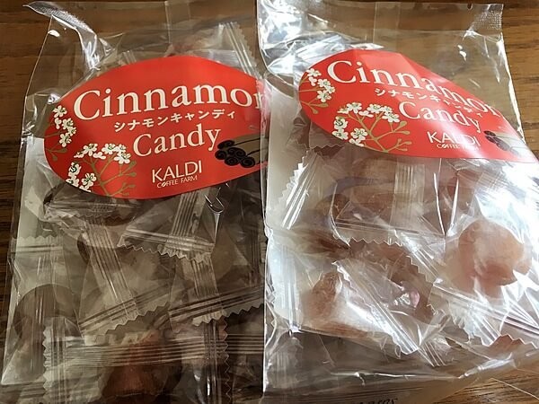 シナモン好きの私がカルディで見かけた時からリピートしている、シナモンキャンディはピリッとした味がクセになります。