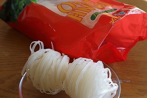 - 別の鍋にお湯を沸かし、フォーを5分ゆでてから、水洗いし、ザルで水を切る
