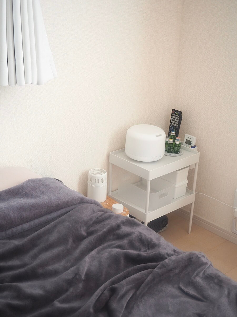 出しっぱなしにしていてもお洒落なので我が家はベッドサイドに置きっぱなしにしています。