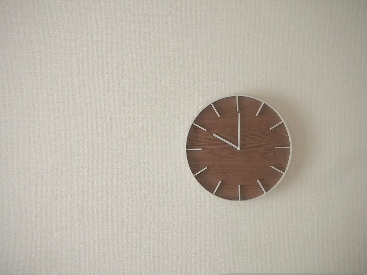 部屋の雰囲気に合わせて飾った時計は、シンプルでありながらシャープなスチールと温かみのある天然木の組み合わせがとてもお洒落。お部屋のアクセントにもなっています♪