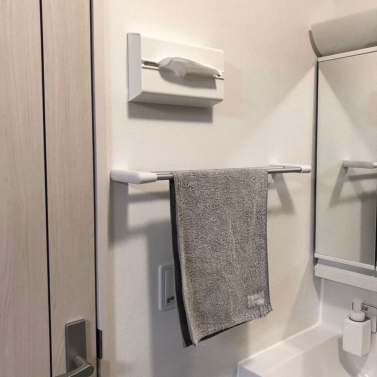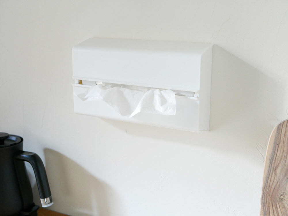 こちらは洗面所で使っている壁掛けタイプのティッシュボックス。