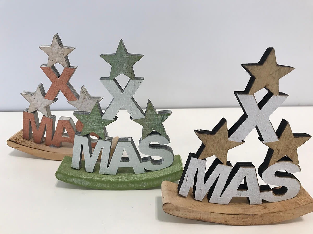 「M」「A」「S」のアルファベットが「X」を支える形でクリスマスツリーに。