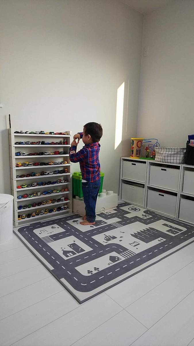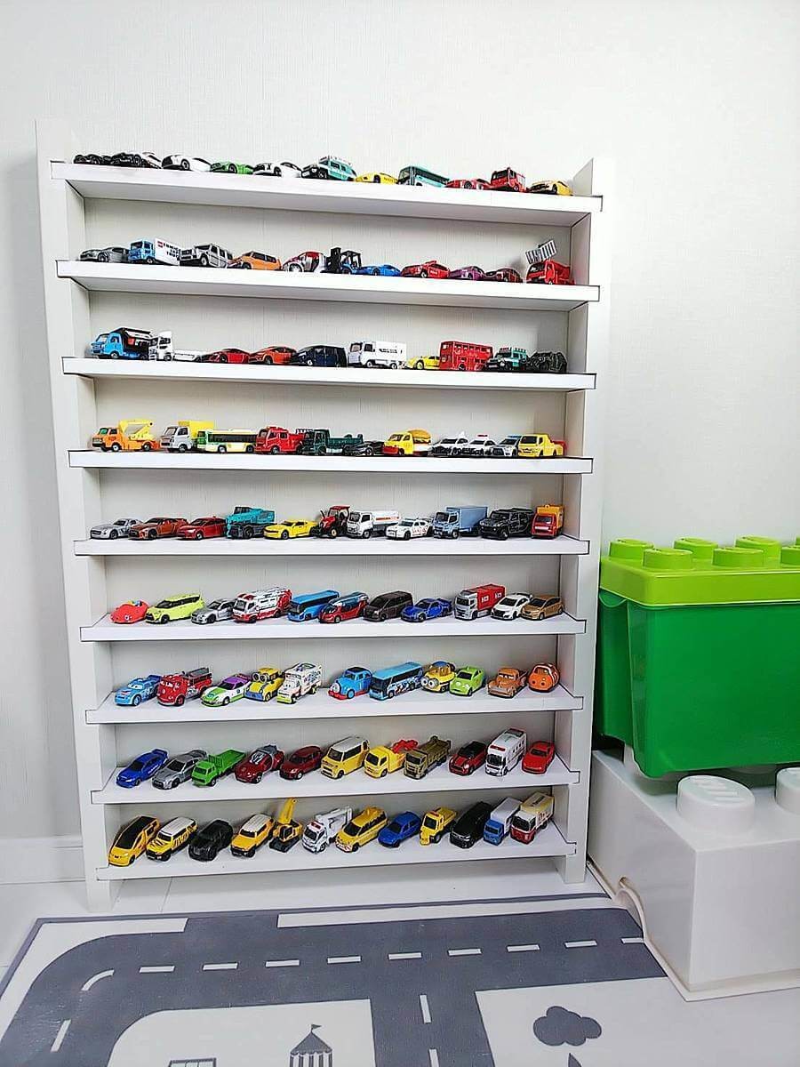 そこで楽しみながら収納できる方法は無いかなぁと調べてみるとトミカ専用の棚を置くのが良いんじゃないかと思い、早速私も手作りしてみました。