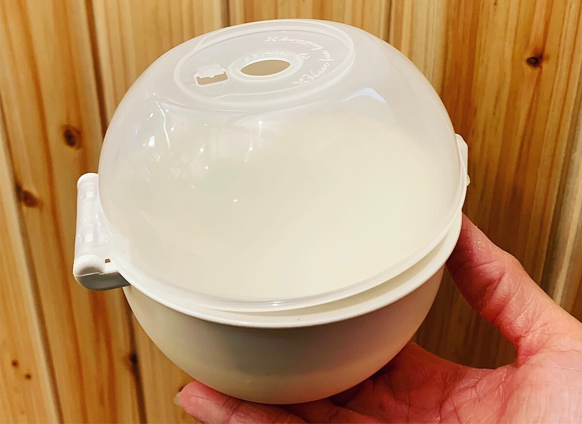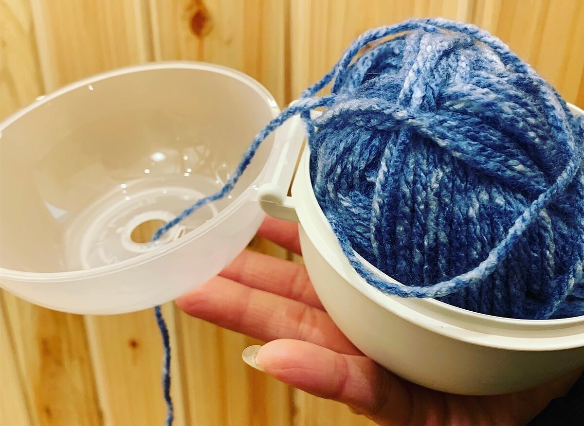 こちらの保存容器の様なケースは蓋の中央から毛糸の糸を出して使用出来る毛糸ストッカーです。