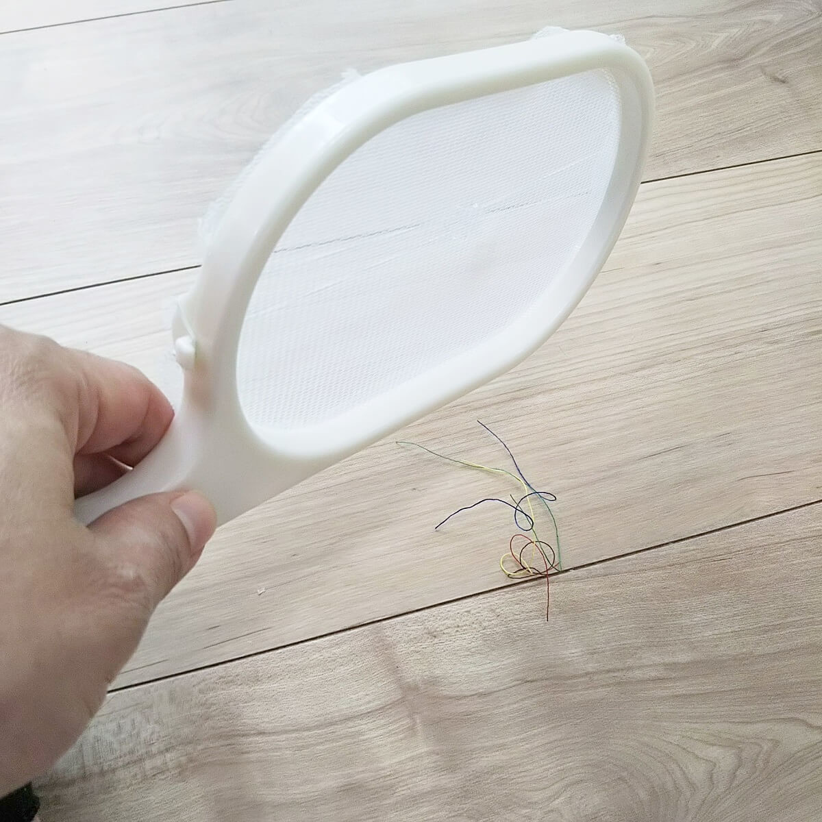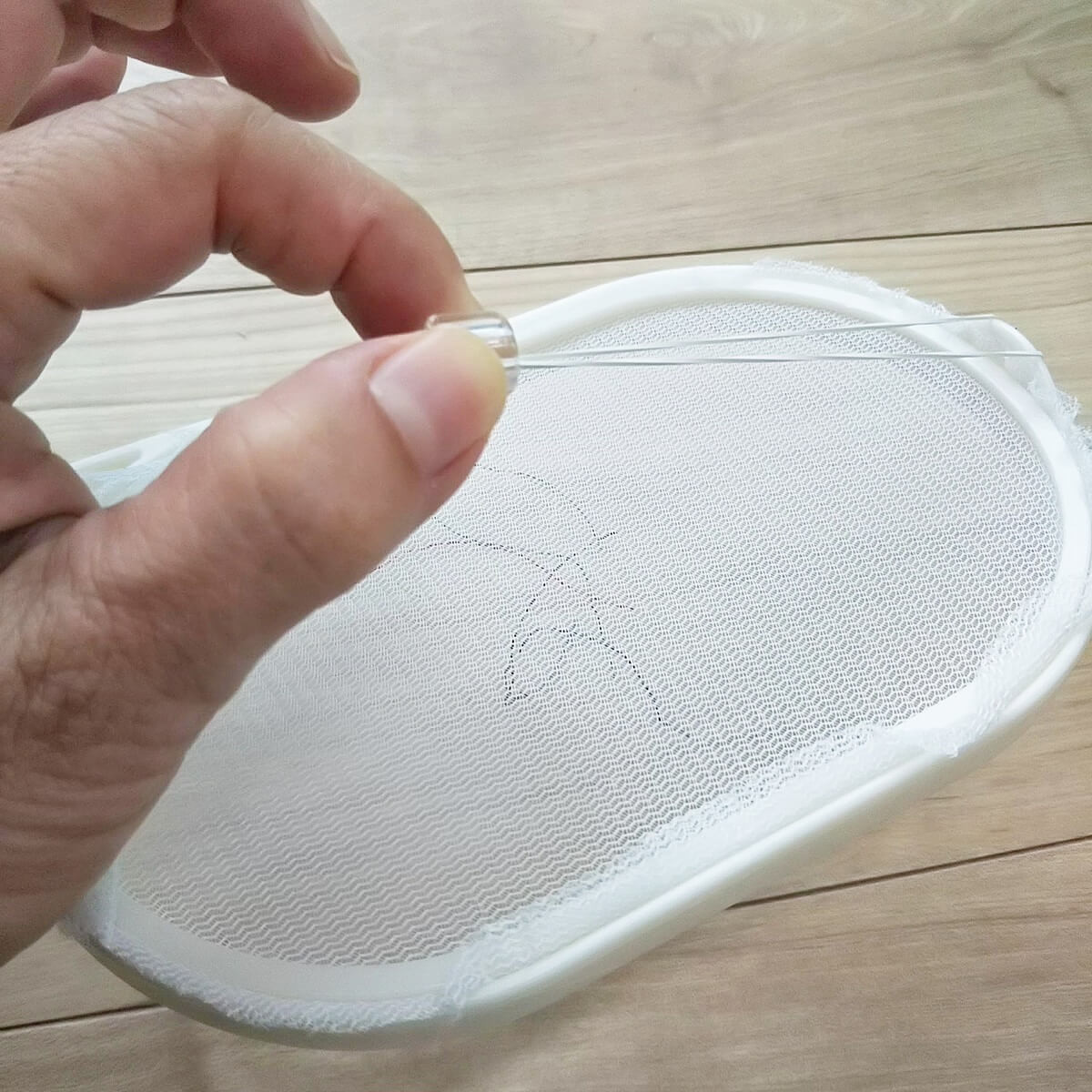 軽快な音と共に、糸が全部下に落ちました。ただゴミや髪の毛をすくだけでなくて、簡単にネットから落とせるのがポイントです。