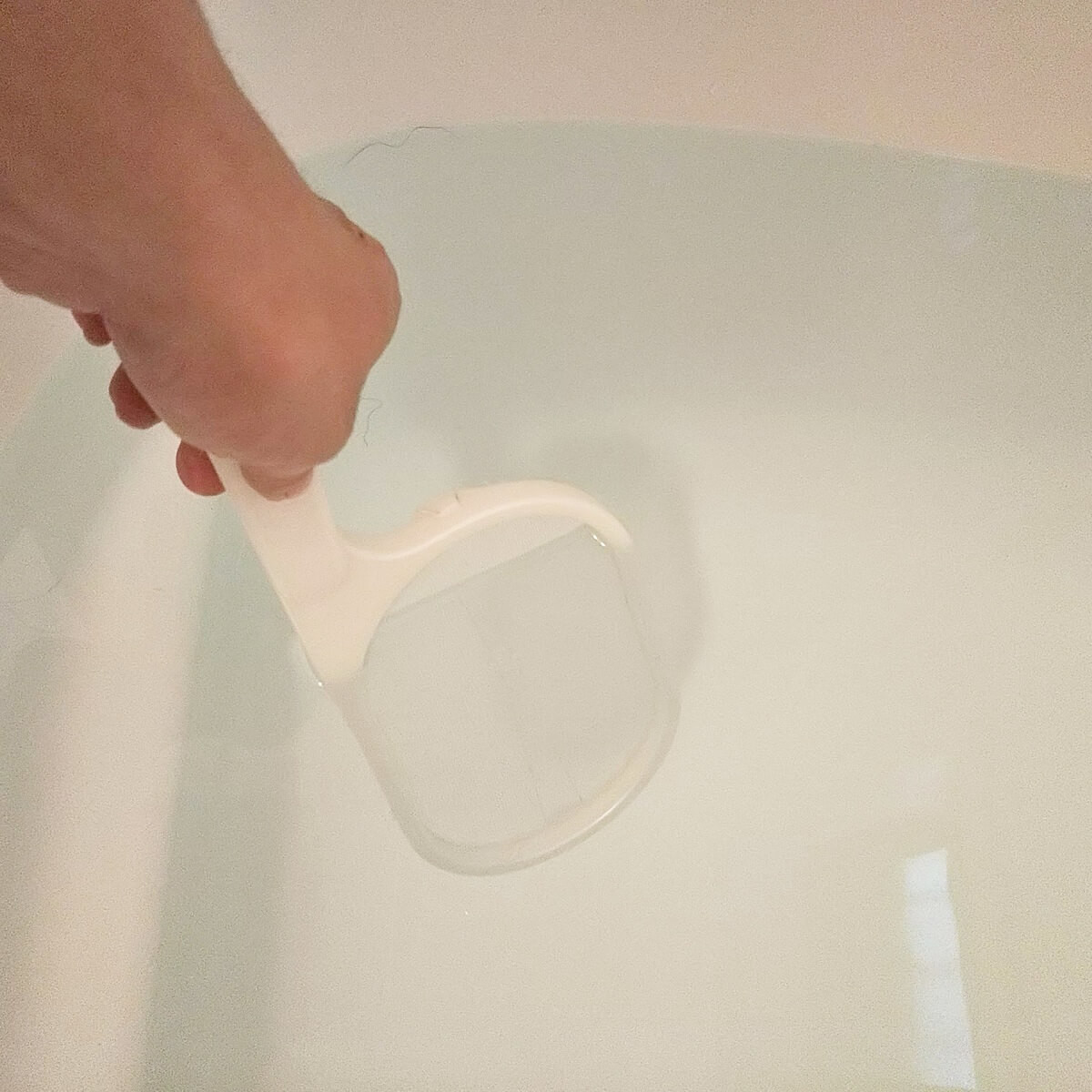 私が出る時に、浴槽のフタにこれを置いておくと息子たちが入浴しながらすくってくれます。