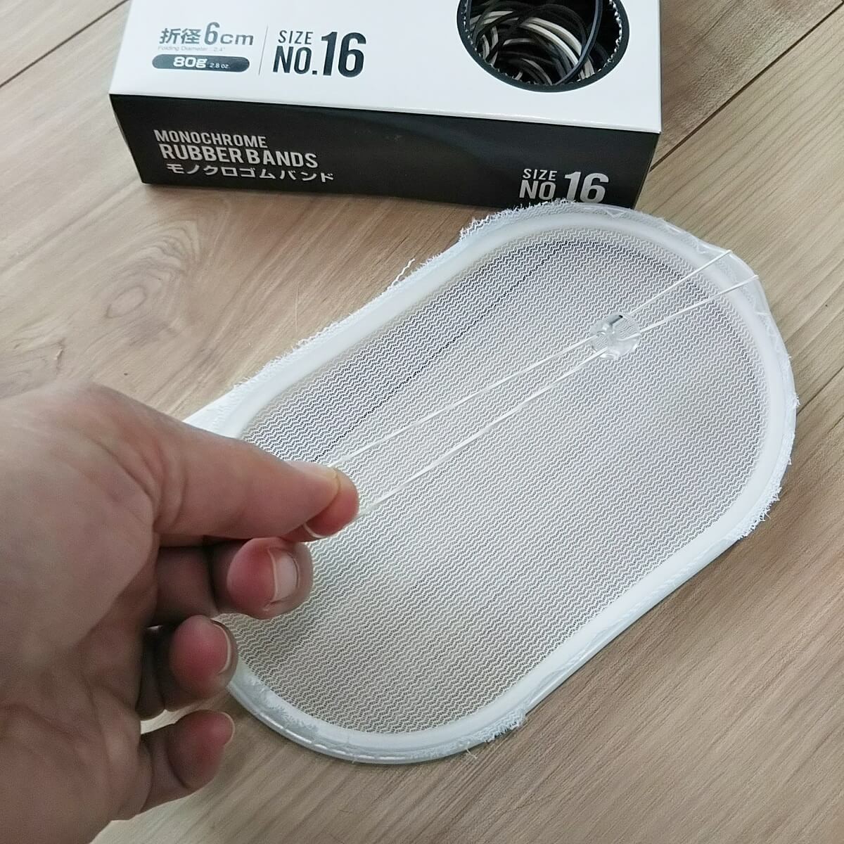 私はモノクロの輪ゴム(ダイソー)を愛用しているので、この中の白いゴムで代用しています。