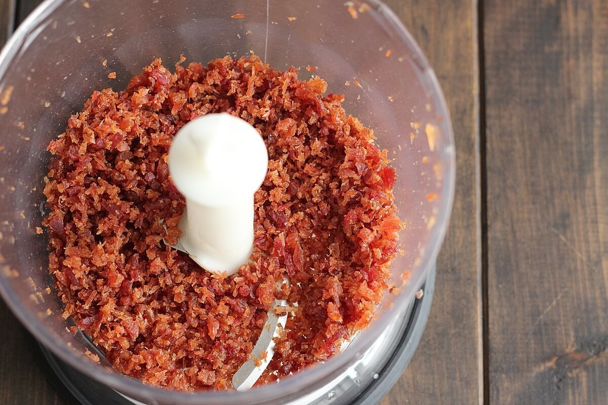 厚くカットしてある部分は粉砕されにくいので、なるべく薄いものを選び、そして2cm角ほどにキッチンばさみでカットしてからフードプロセッサーにかけます。