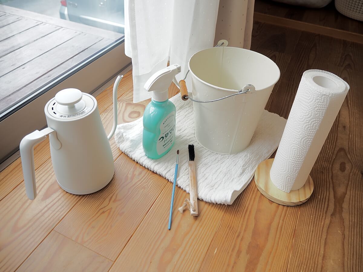 私はウタマロクリーナーがスプレー式で使いやすいので頻繁に愛用していますが、なければ台所用の中性洗剤でも問題なく使えます。