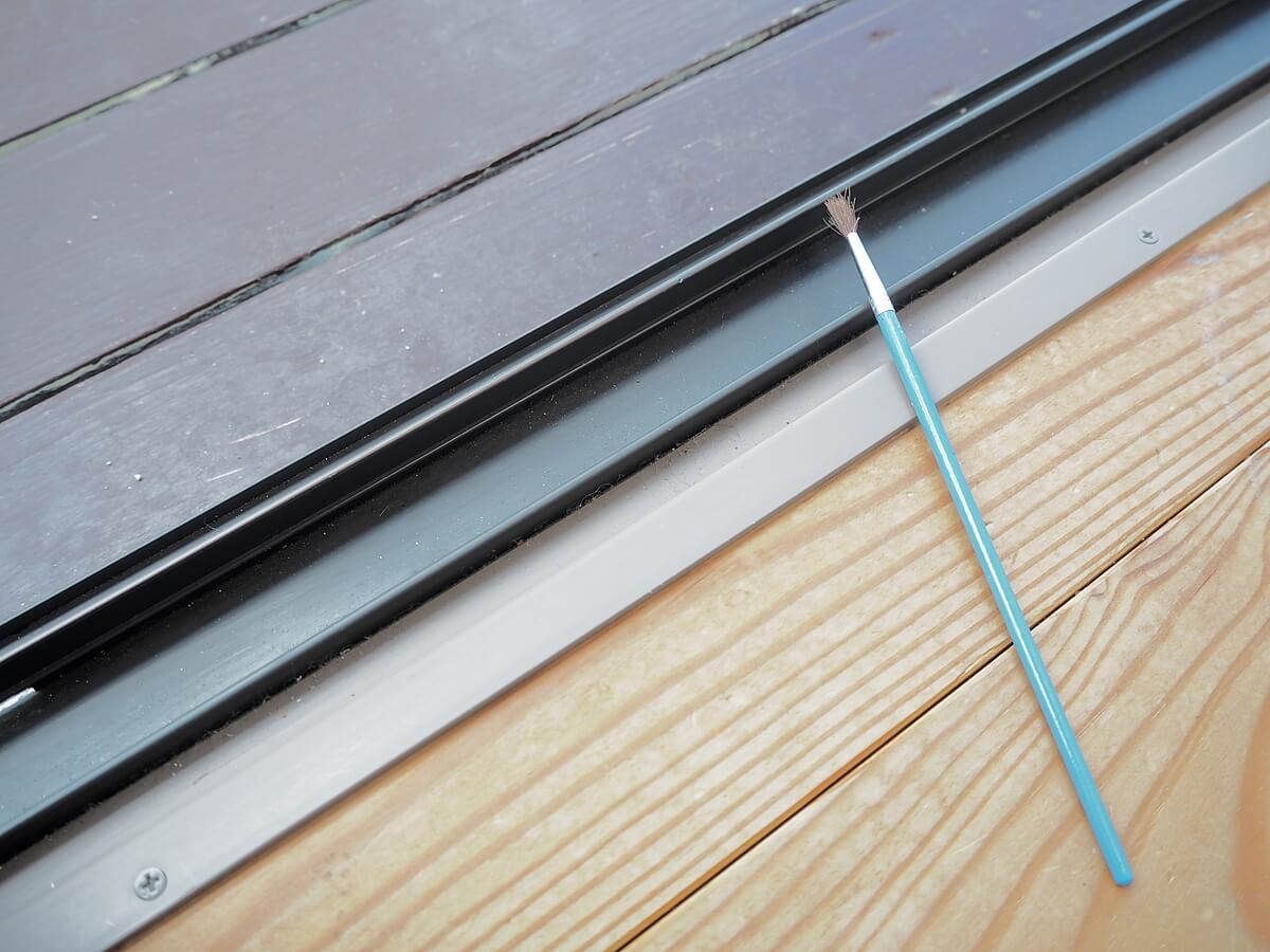 まずはレールに付いたホコリや砂を筆などを使いながら綺麗に払っていきます。