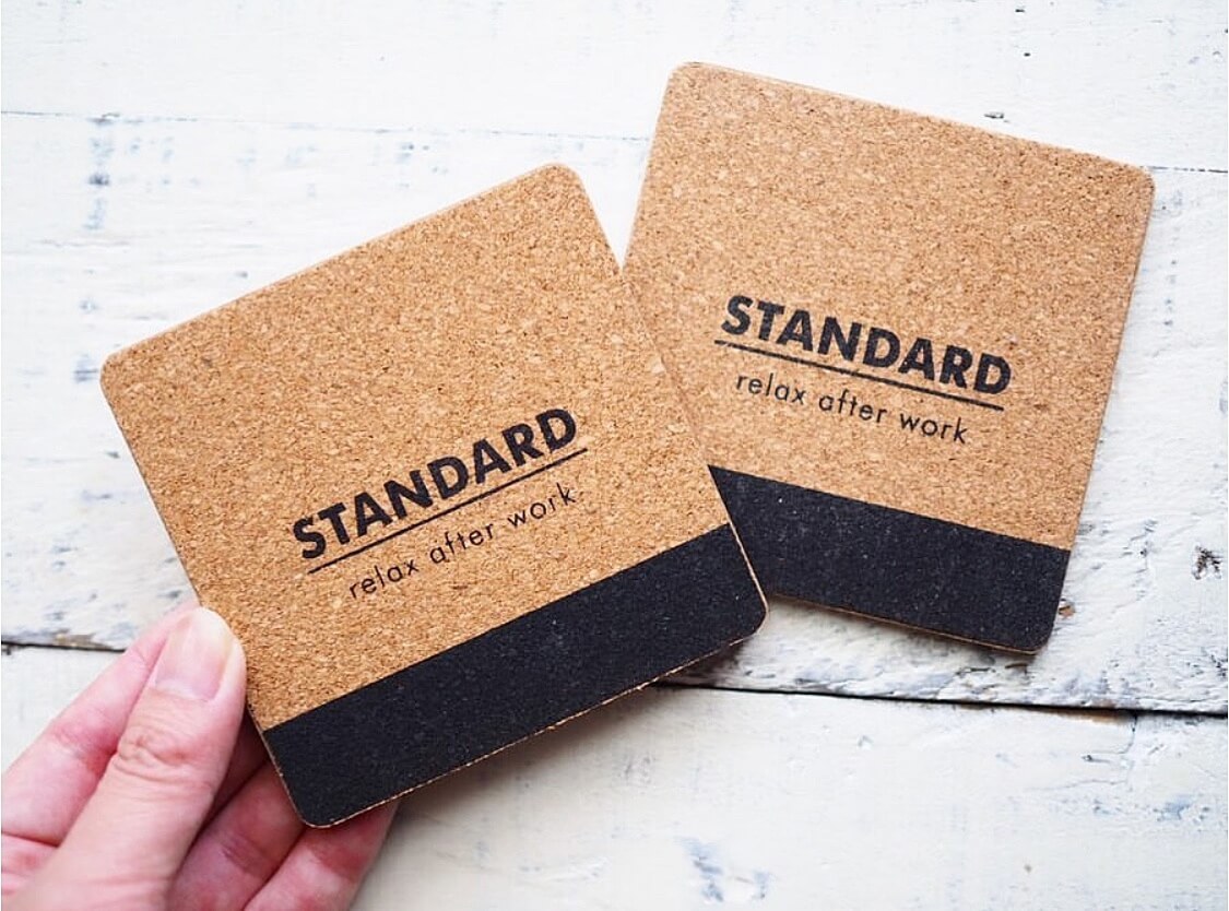 ▲「コルクコースター 9cm 2P ロゴ」100円(税抜)