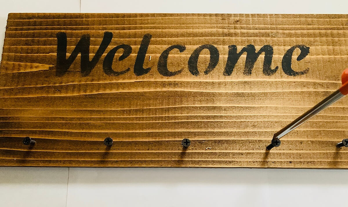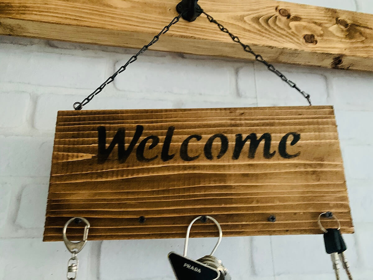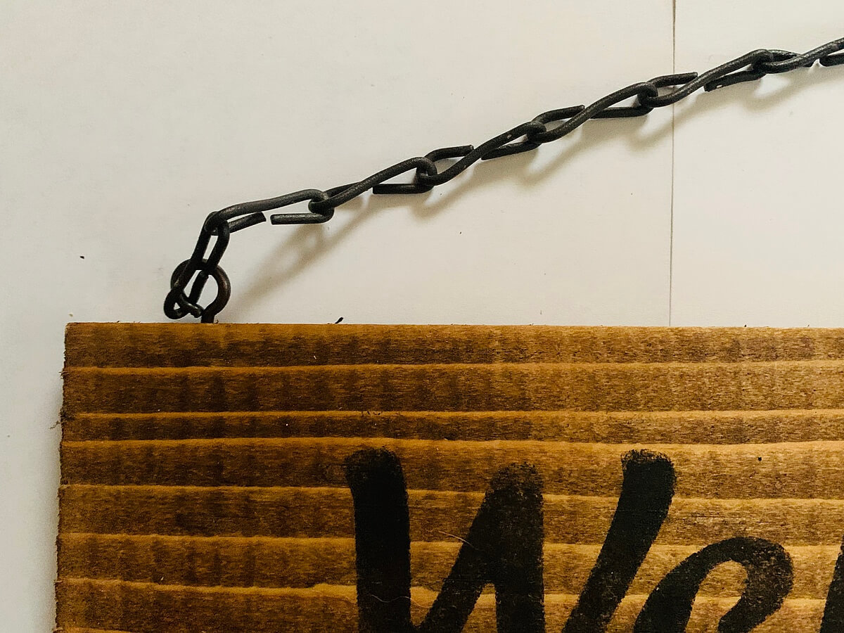 吊り下げ用金具とチェーンを取り付けたら簡単ウェルカムボードの完成です!