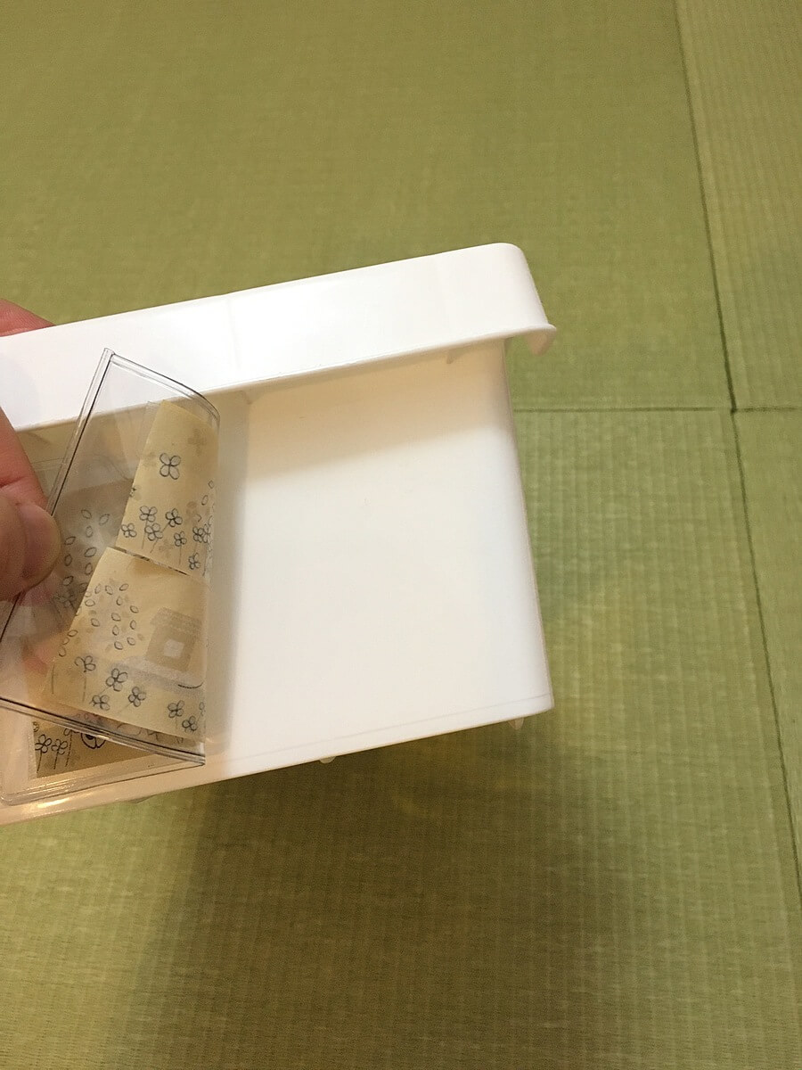 ボックスにつけているカードケースは、マスキングテープの上から両面テープで貼りつけています。
