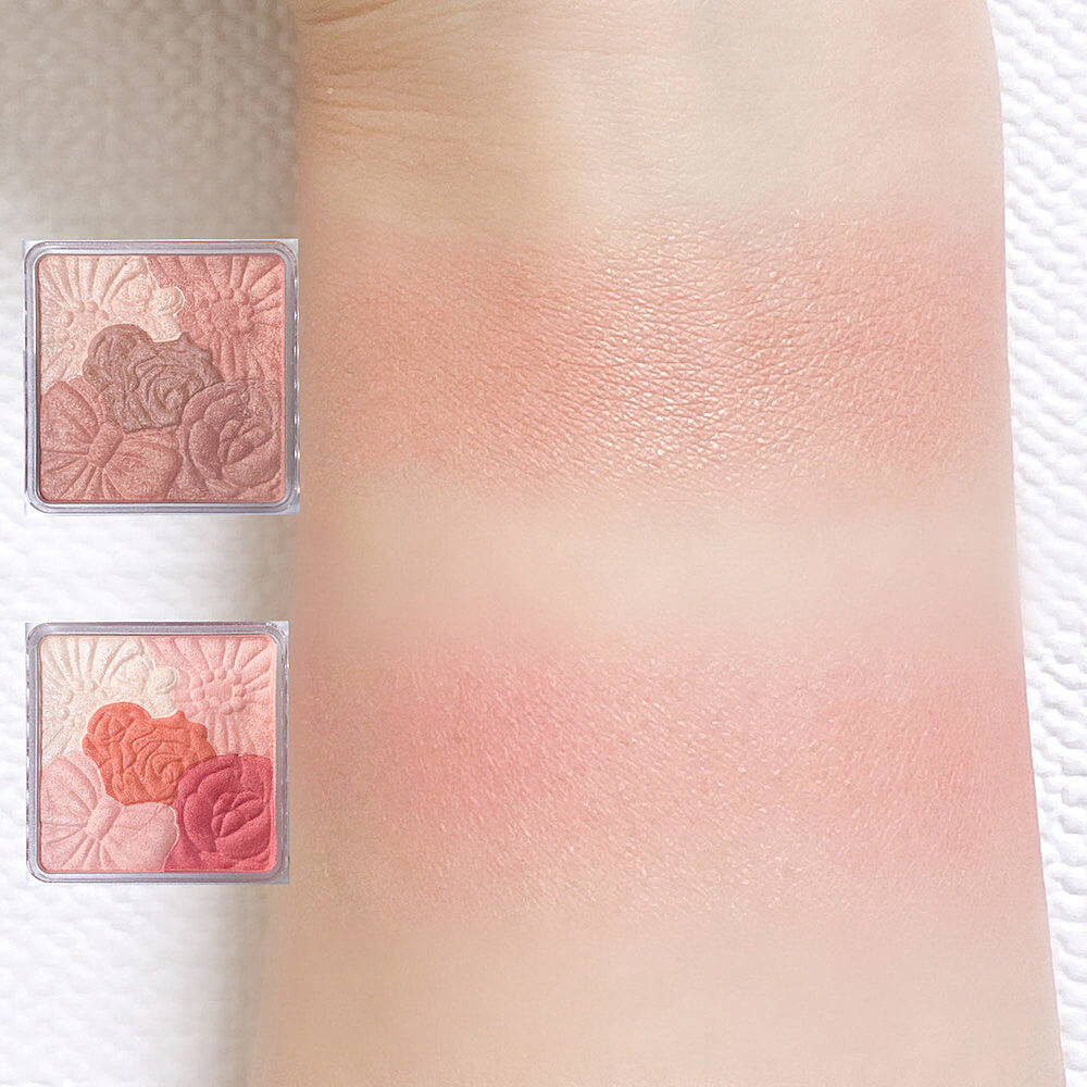 濃い目の発色が苦手な方は、大きめのブラシで一旦テッシュで余分なカラーを落としてからふんわり乗せるようにすることで、本当に内側から滲み出すような血色感を演出できます。