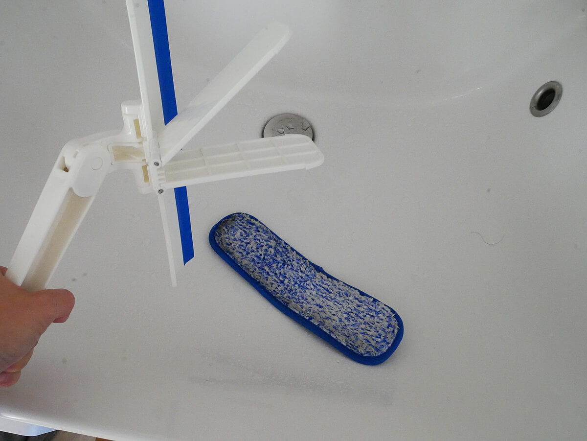 クリーナーは洗剤なしで汚れを落とすブラシ&マイクロファイバー。ブラシが汚れをかきだし、マイクロファイバーが汚れをキャッチする構造になっています。