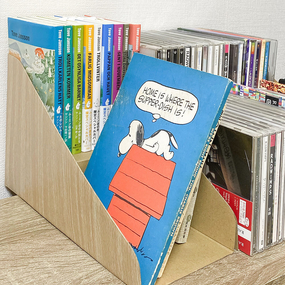 このブックスタンド、そのまま本棚やBOXに入れられるのもメリットのひとつ。