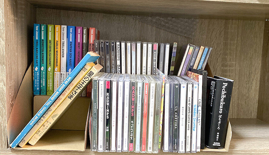 奥側のタイトルも見やすく、聞きたい時に聞きたいCDがすぐに出せそう。探している工程で部屋が余計に散らかることもないのも好ポイント!