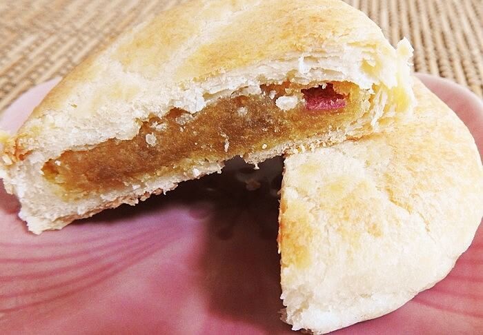 シャトレーゼの田舎パイは、あずき・かぼちゃ・さつまいもの全部で3種類。中でも私が一番気に入っているのが、さつまいも味です。パイ生地の中には、直炊きのさつまいも餡がたっぷり詰まっています。