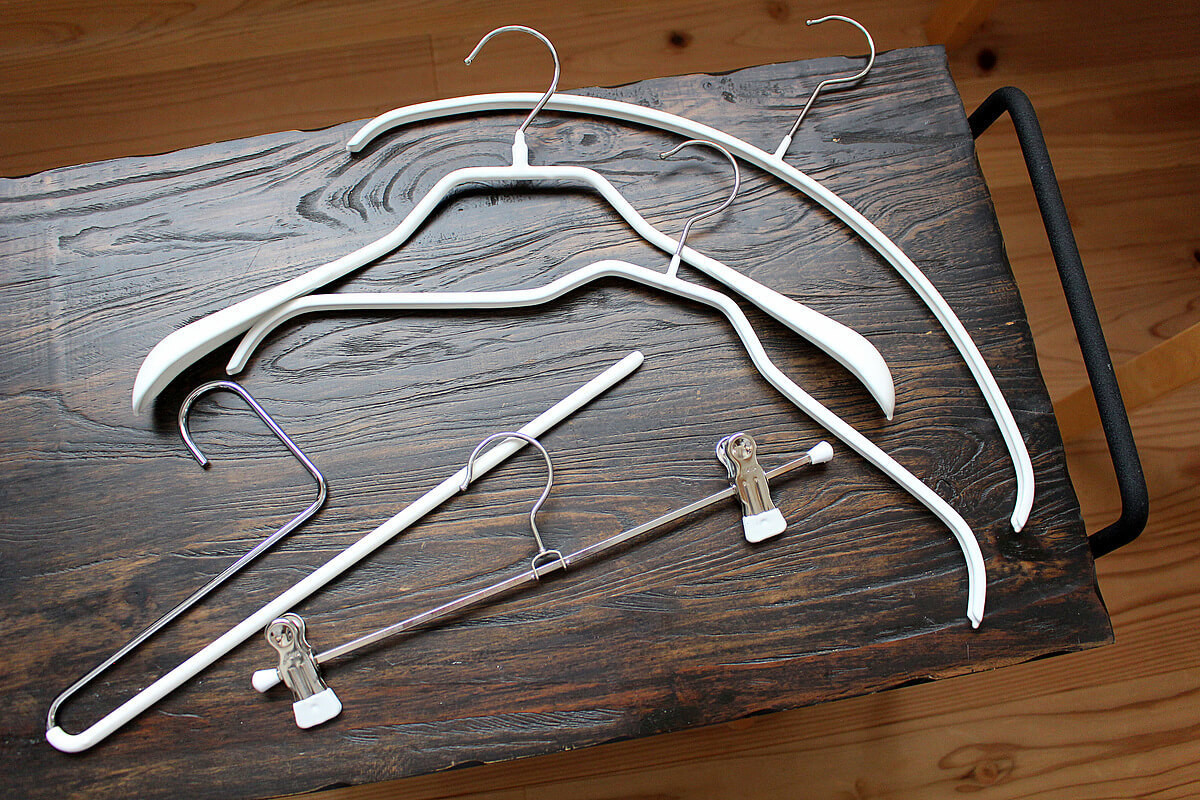 服のタイプに合わせてシルエットを選べて、薄型だからクローゼットがスッキリ整います。