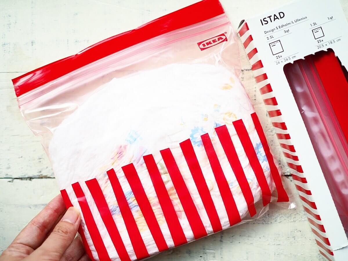 フリーザーバッグは食品保存のイメージがありますが、細々した雑貨小物を分類したり、子どもとのお出かけの時に紙おむつやおもちゃ、お菓子などを小分けしてジッパーで閉じることもできてとても便利です♪