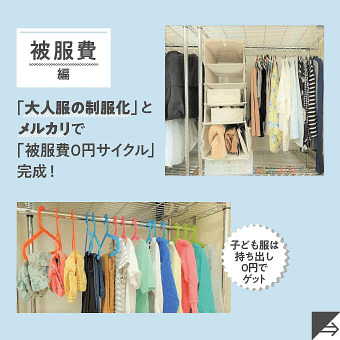 被服費は「フリマアプリ」を活用して、売った収益をアプリ内で循環させ、ほぼ0円で買い足しをできる仕組み作りがコツでした!