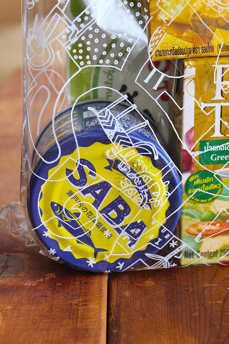 詰め合わせには缶詰が一つ入ると、それらしい見映えに。