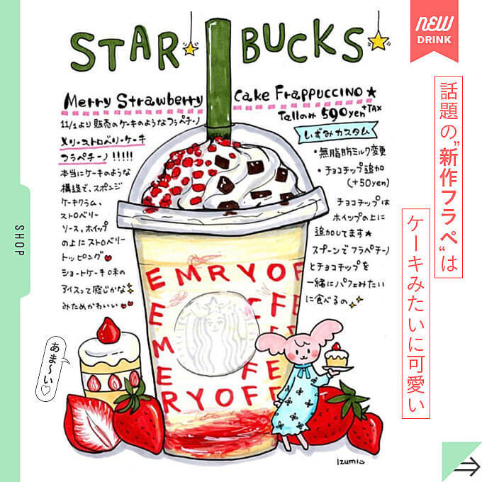 今回は、スタバマニアのヨムーノメイト@izumi_chuchuさんの大好きなスタバのメニューを、手描きイラストでご紹介します。