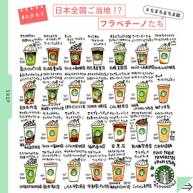 全国各地の1,449店舗が考えたオリジナルのコーヒービバレッジと、店舗限定フラペチーノ®︎たちの中から、@izumi_chuchuさんが気になるものを厳選!