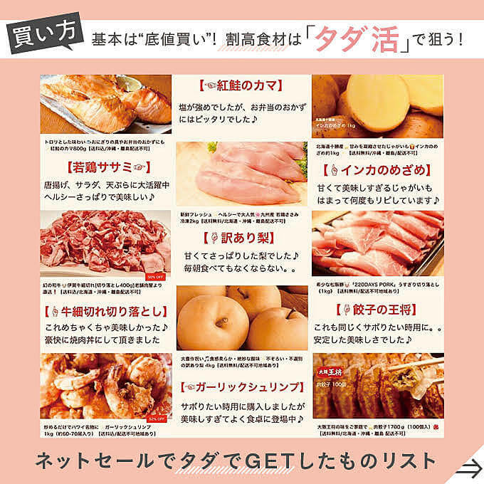 そのほか、定期的に開催されるお得なセールを覚えておき、ふだん買えない"割高食材"を狙うのも手!