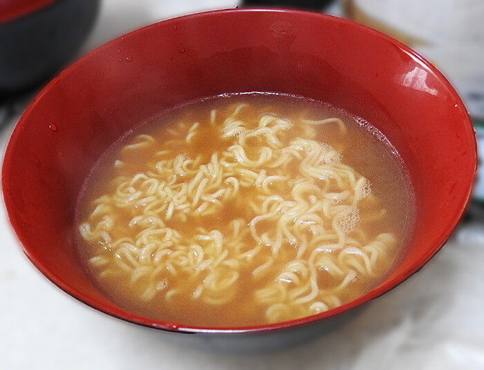 味は薄くて淡白なみそ汁のような味わい。しかし、上で紹介した3種類の袋ラーメンよりは香辛料やポークの旨味も感じられました。個人的には一番マシだったと思います。