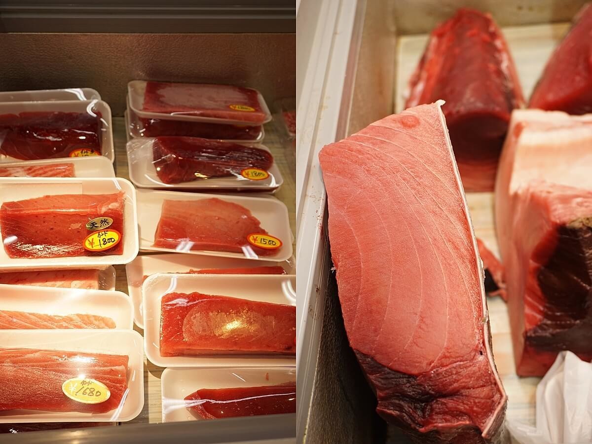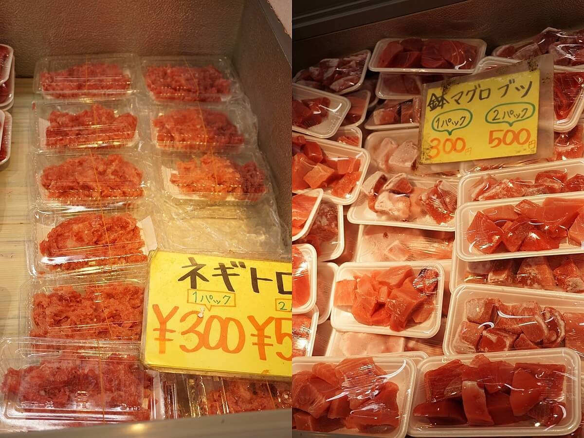 こちらも日によってマグロの種類が異なりますが、本マグロの中トロ・大トロ、インドマグロの赤身・中トロ・大トロなどが販売されています。