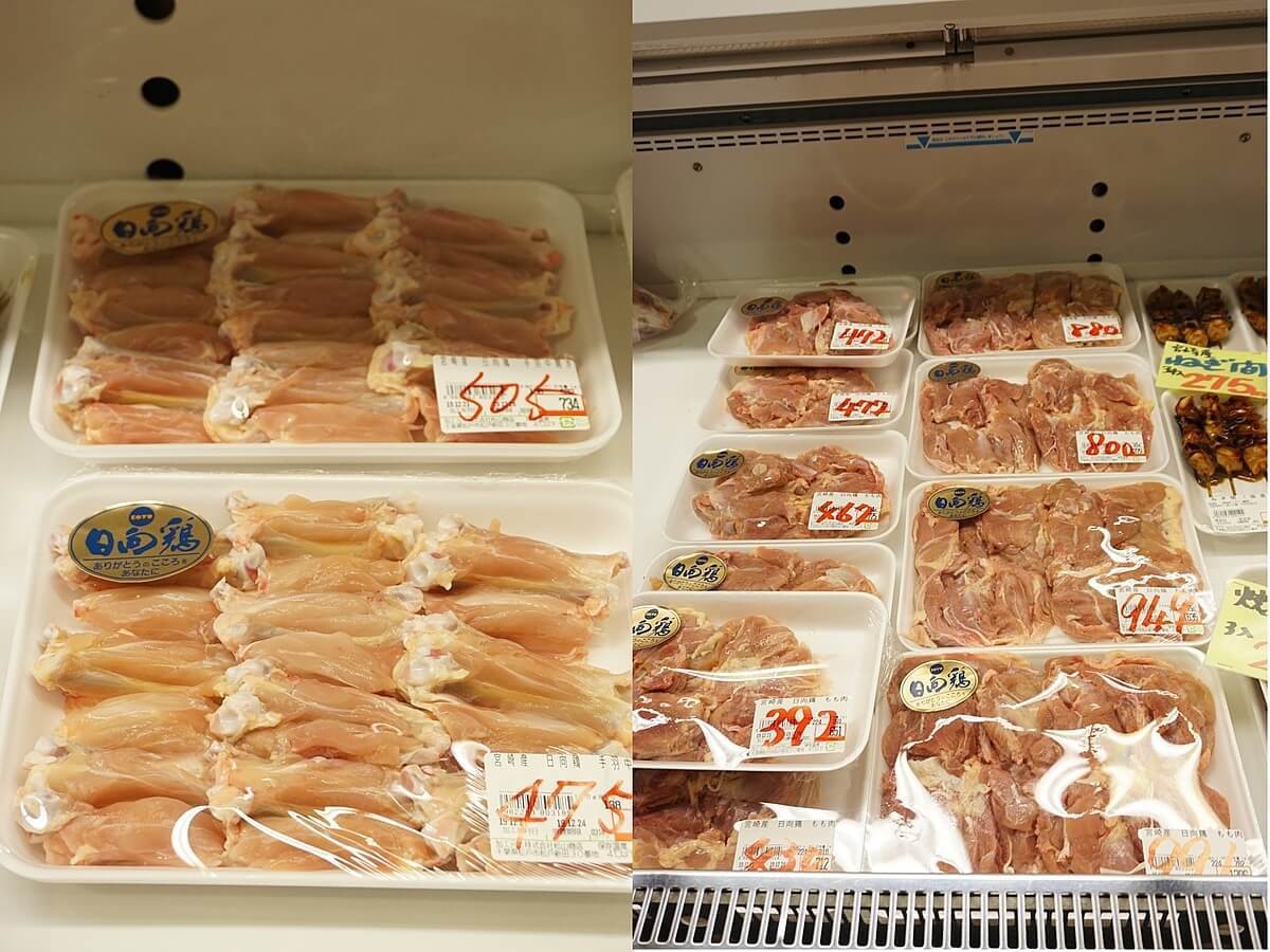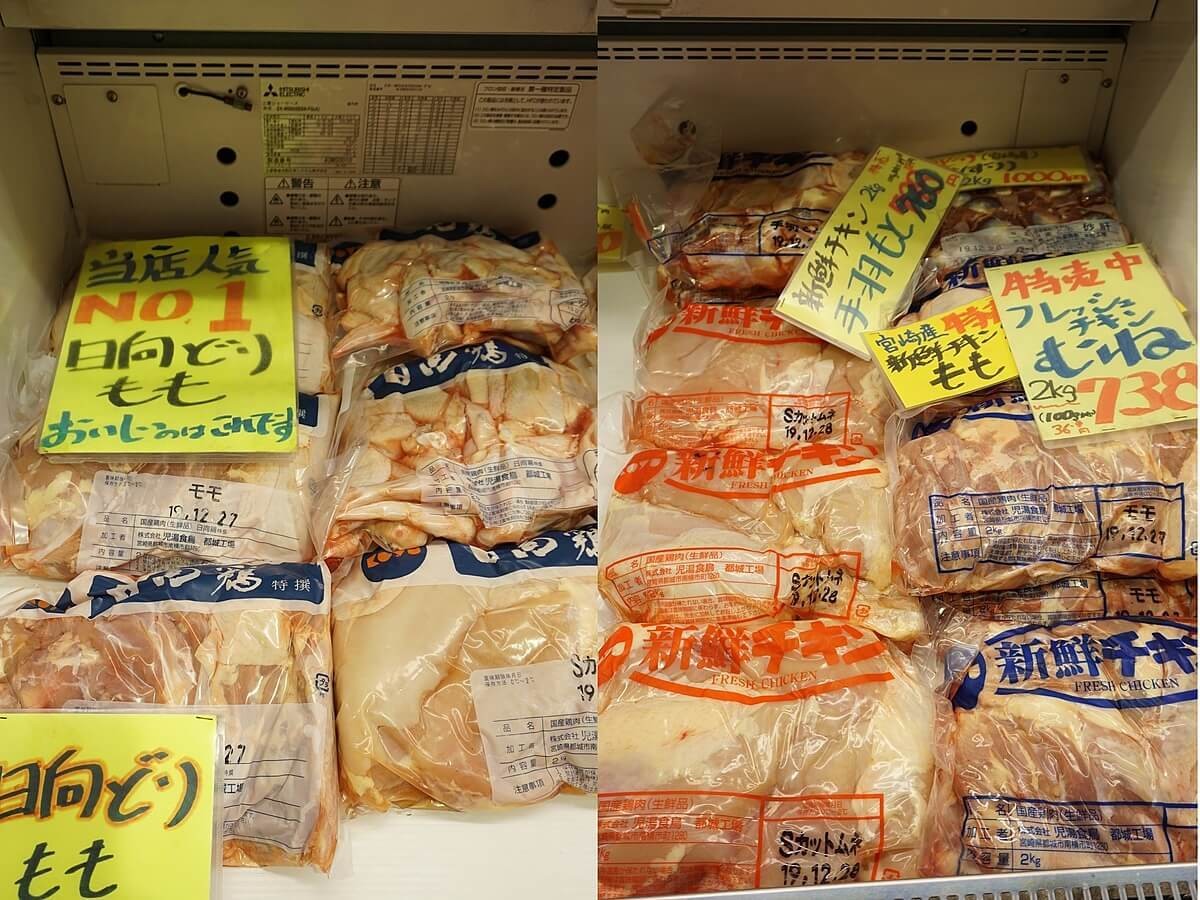 こちらのお店では、宮崎県産の日向鶏(ヒュウガドリ)、日南(ニチナン)どりなどが販売されています。