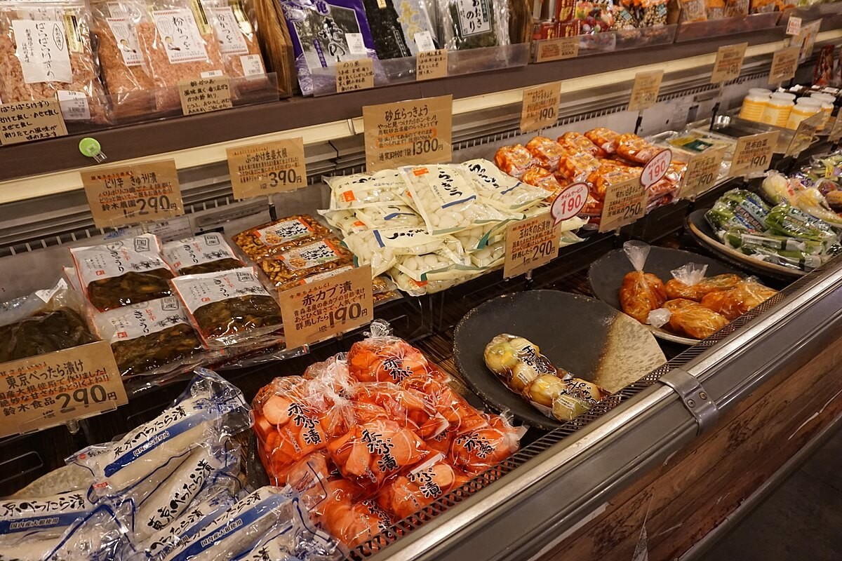 野菜のほかにも漬物や総菜、干物や冷凍食品、スイーツなども充実しています。