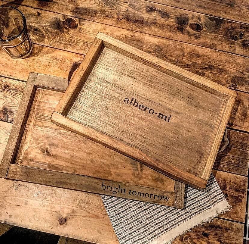 次に私がよく使うアイテムはカフェトレイですが、こちらは手作りで作ったものです。