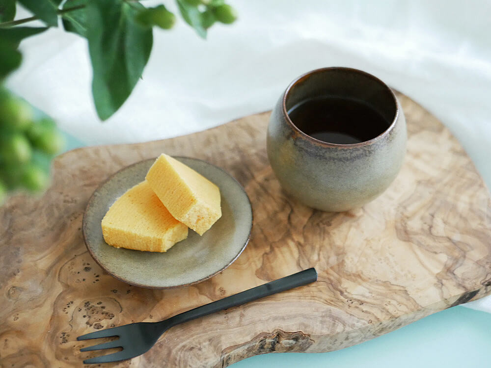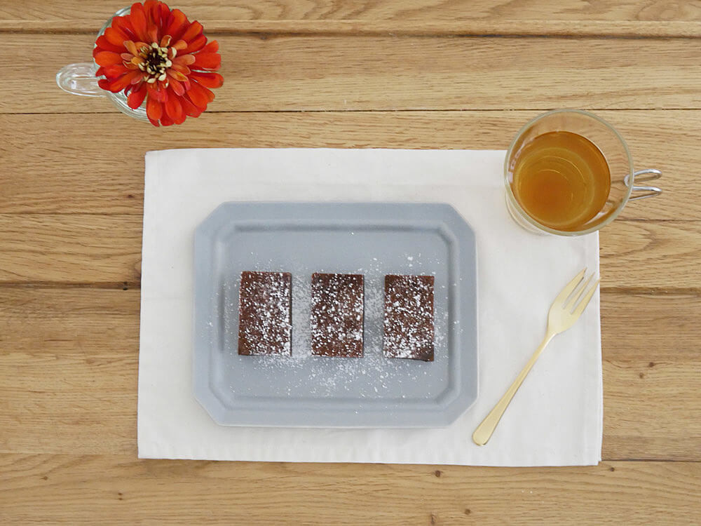 色々な大きさを作っているので、カフェタイムだけじゃなく、ランチにも使えます。このトレイに載せるだけでも気分が違いますよ。