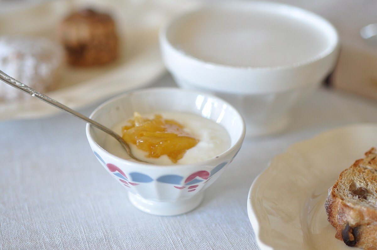 プレーンヨーグルトにジャムを入れただけだけど、器が素敵だからそれだけで立派なデザートになります。