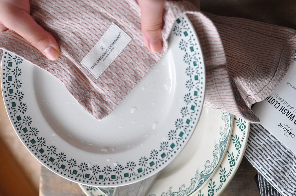 オーガニックコットンで作られたキッチンクロスは、手触りも吸水性もよくって食器ふきが苦にならないアイテムです。