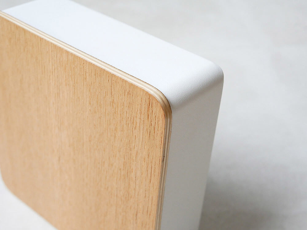 丈夫なスチール製の本体に、リンの扉には天然木積層合板を使用。シンプルながら角がなく丸みを帯びた優しいフォルムになっています。