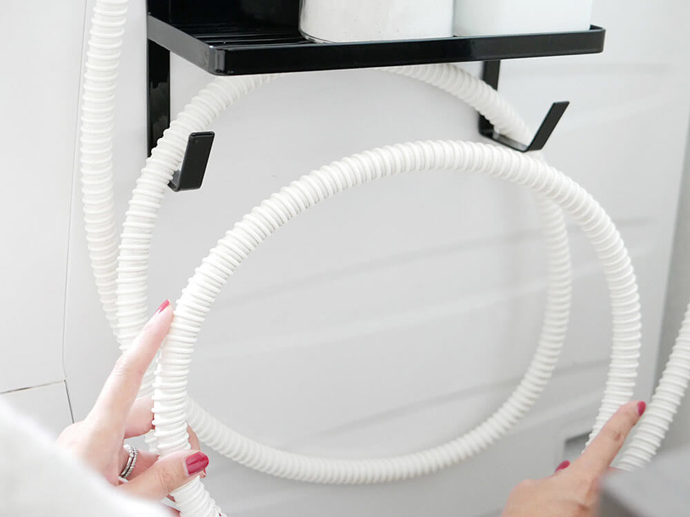 収納に困る洗濯ホースがスッキリと片付いて、プラスαの収納も出来るスグレモノ!