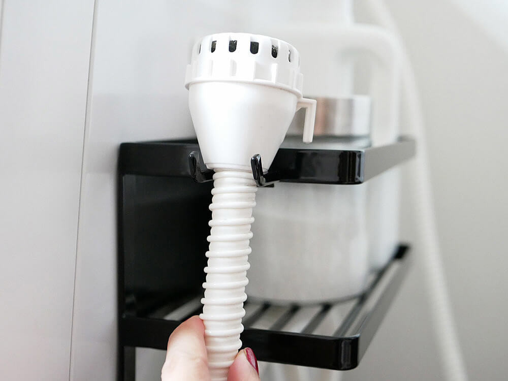 ホースの中に水が残っていると、給水口から水がこぼれて床が濡れてしまったり、意外とかさばるホースの収納にお困りの方はいませんか?