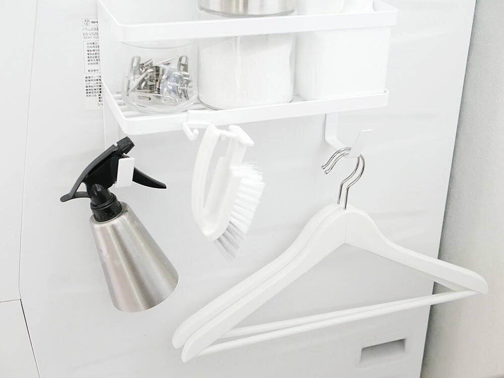 また、下のフックにはランドリー小物やハンガーをかけて収納するのもおすすめです。