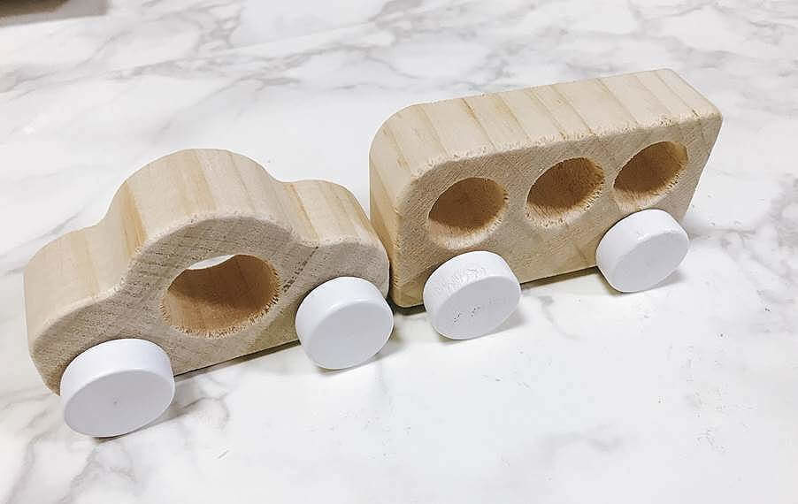 このぽてっと感がたまらない車。種類はバスと普通車の2種類。こんなに可愛くて、しかも木製なのにもちろん100円です。
